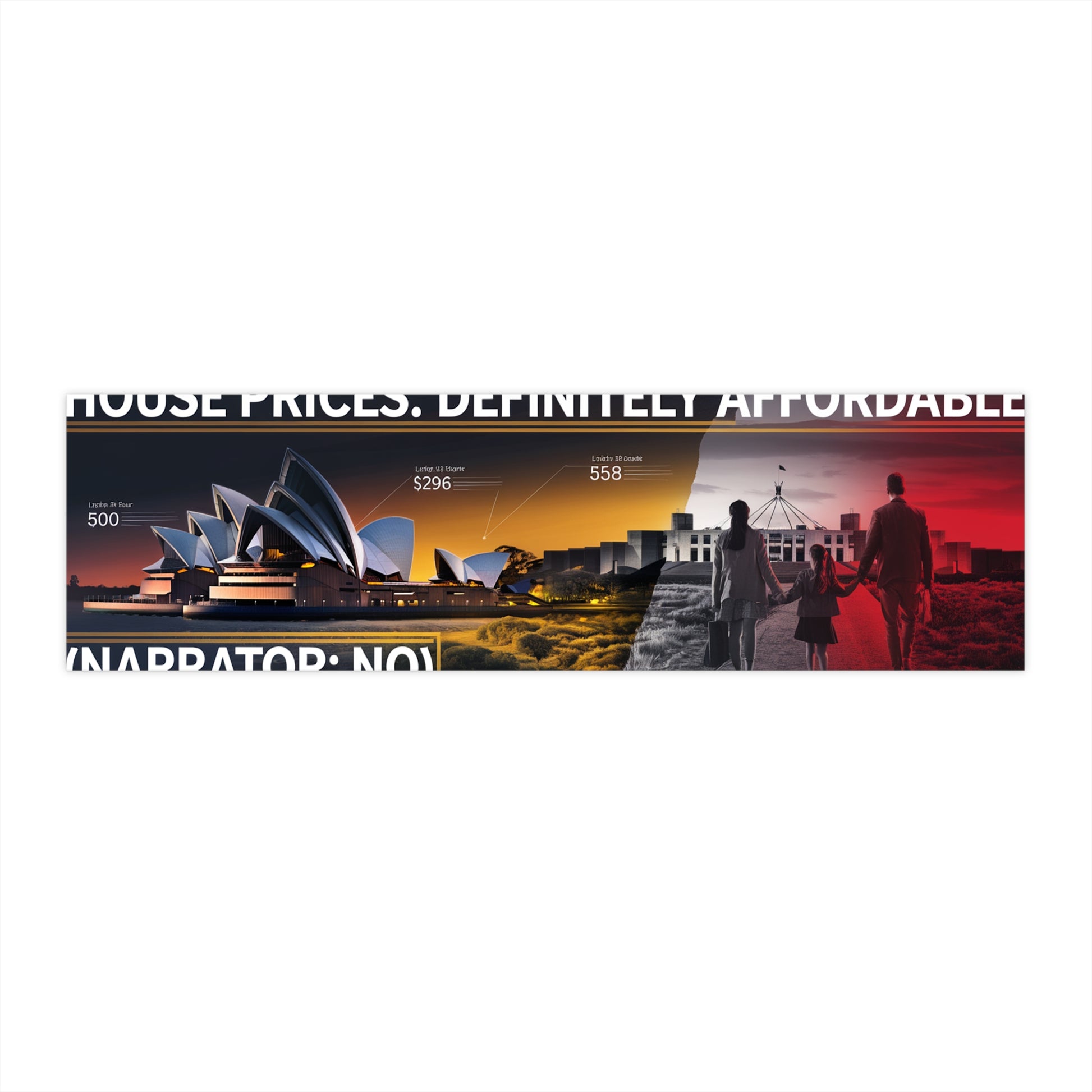 House Prices: Definitely Affordable (Narrator: No) — a premium bumper sticker for people who are done staying quiet.