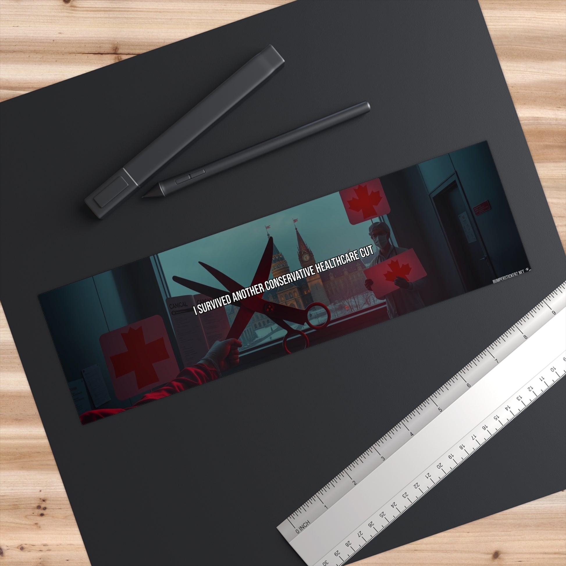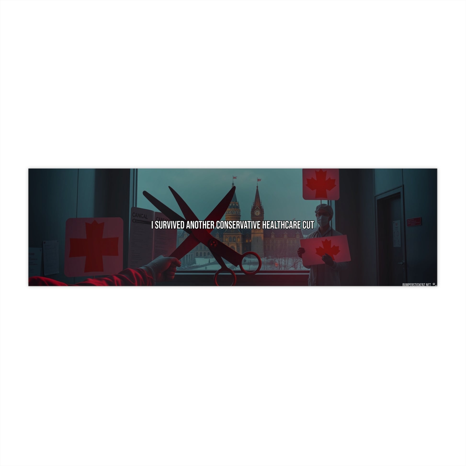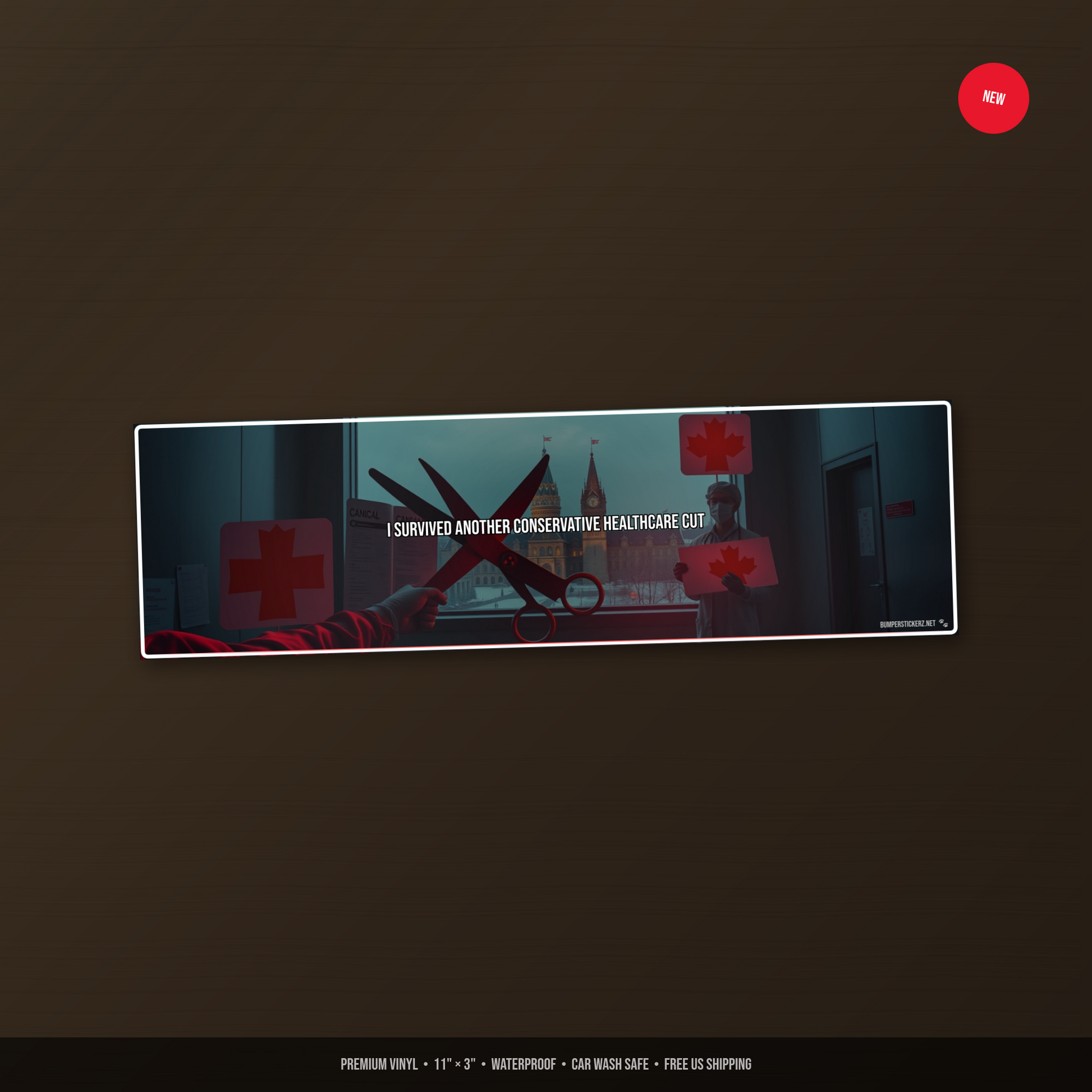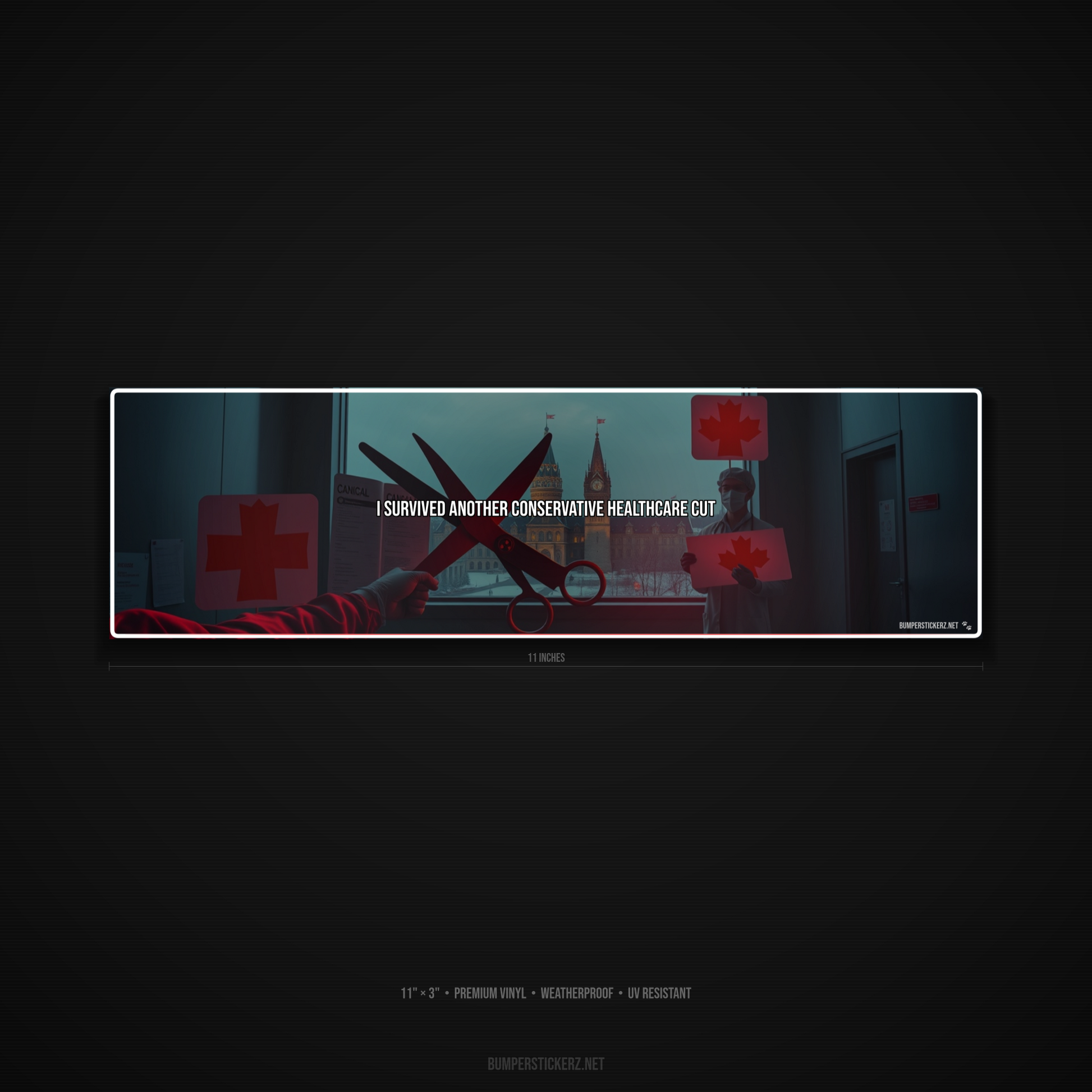 I Survived Another Conservative Healthcare Cut — a premium bumper sticker for people who are done staying quiet.